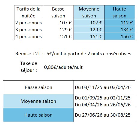 Concernant le lit d’appoint, un appel ou un email est indispensable avant votre venue afin d’en vérifier la disponibilité. Le paiement dû s’effectue directement sur place (+20€/nuit).